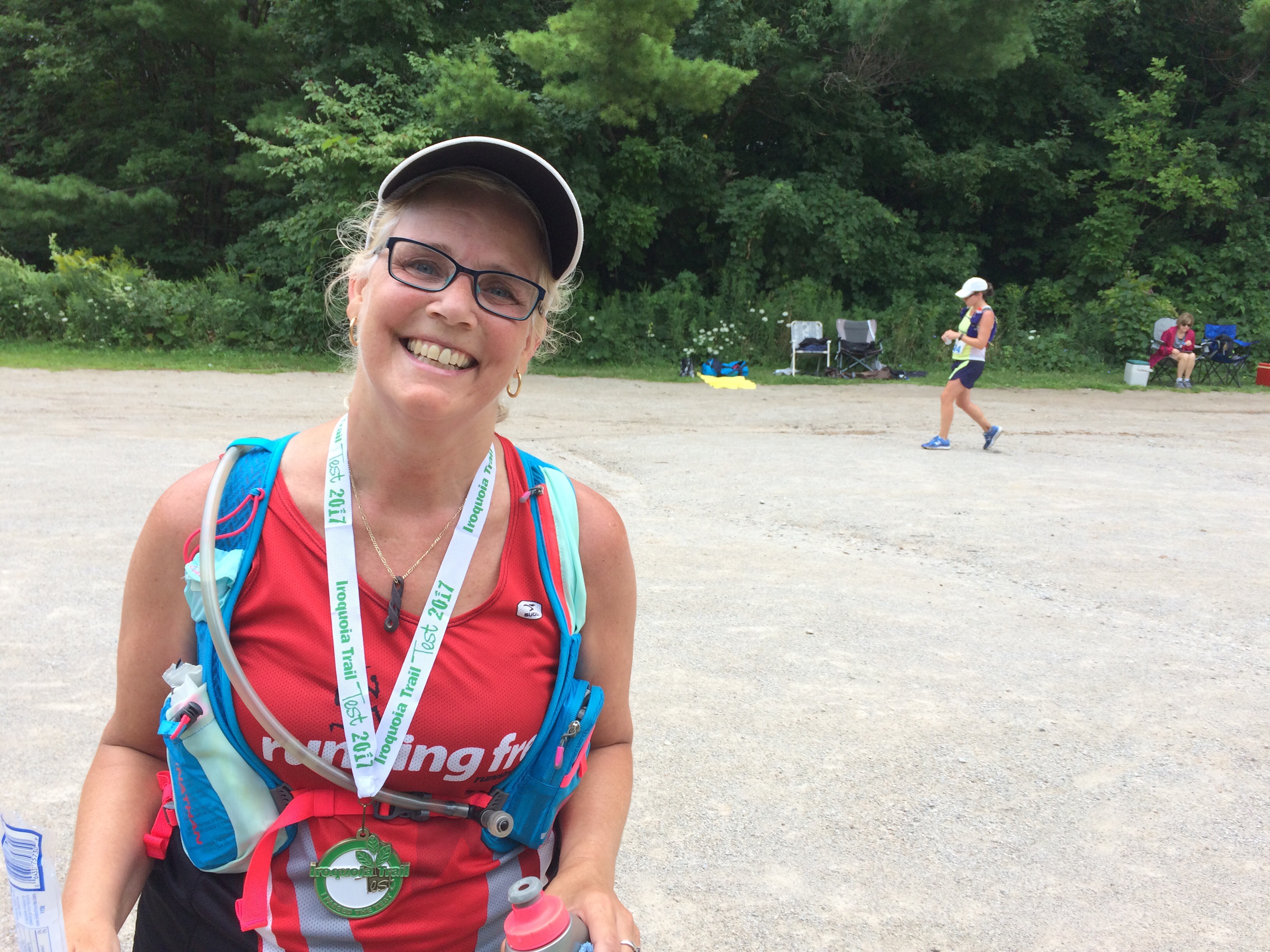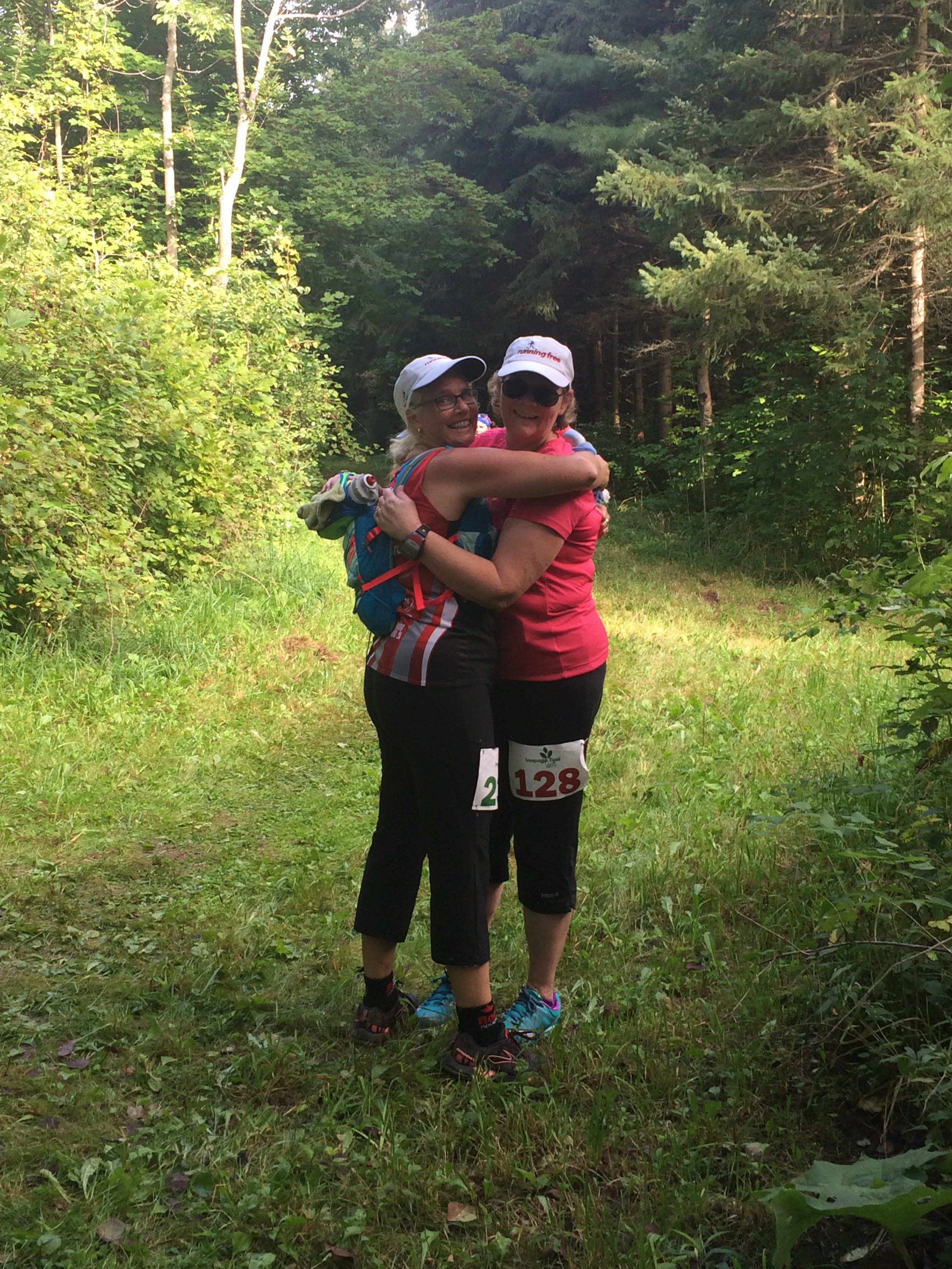 Yay! We are back racing! Well that’s is debatable, racing that is, but the Sisters ran the Iroquois Trail Test today! Beautiful day, challenging course, lots of heart pumping fun. we even had an awesome guest with us, Cecilia! The three of us rock the course, and yes there were tons of rocks, and hills and more rocks, a true Test! Yay for us!